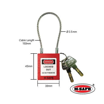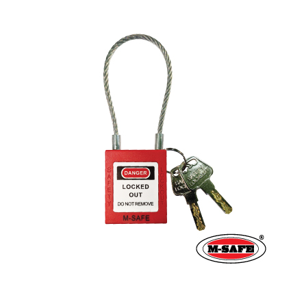 M-SAFE SAFETY PADLOCK STAINLESS STEEL 3.5MM WIRE ROPE- RED